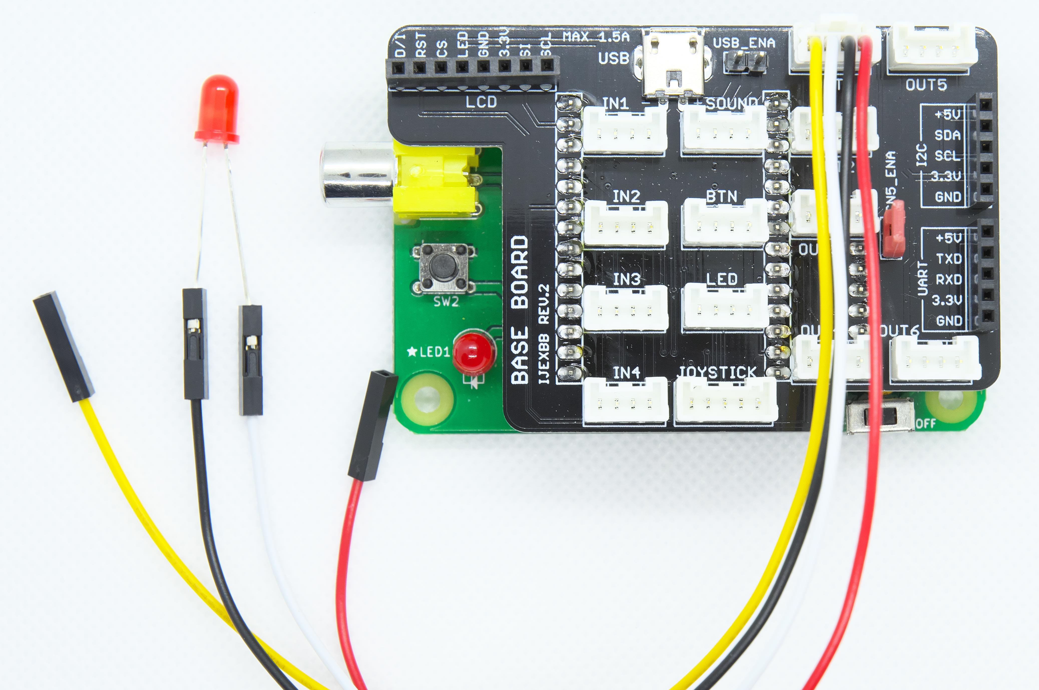 ベースボードから3.3V、5V、GND、信号の4本を単独で使うことができるため、